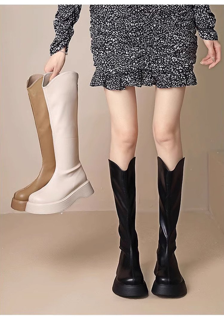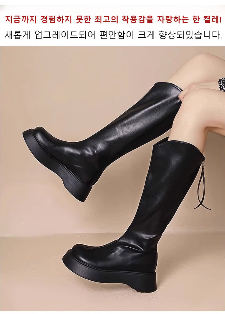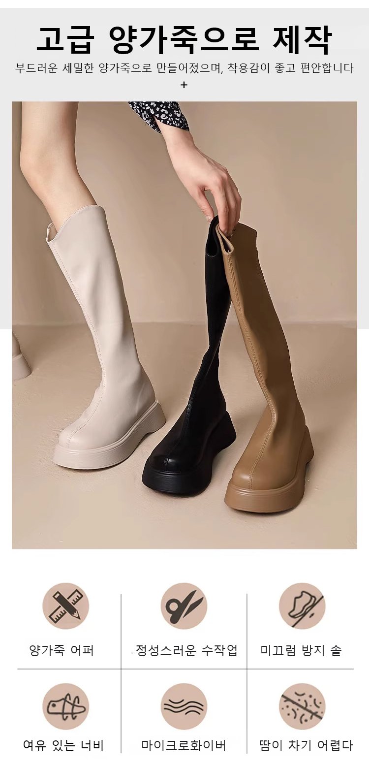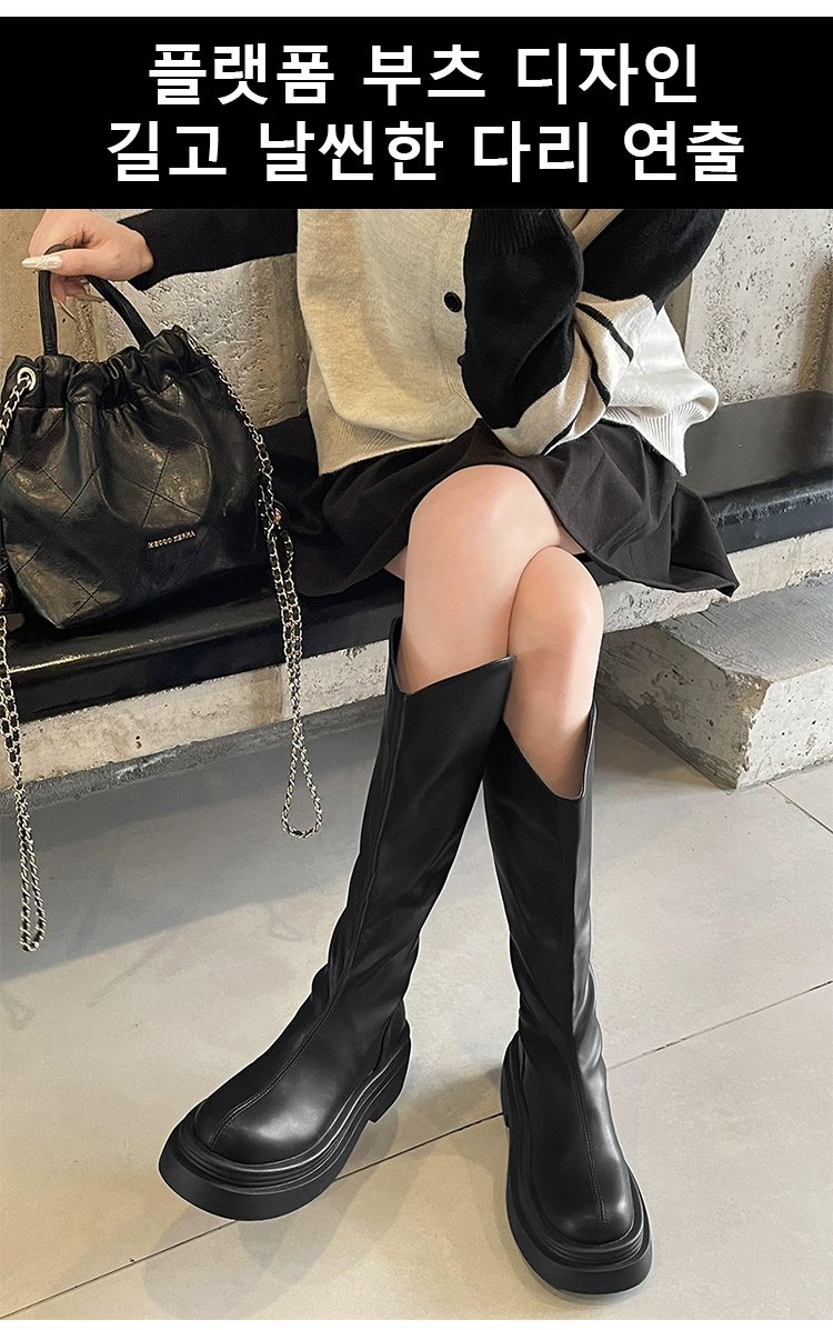 브이컷 플랫폼 슬림핏 양가죽 라이더 부츠