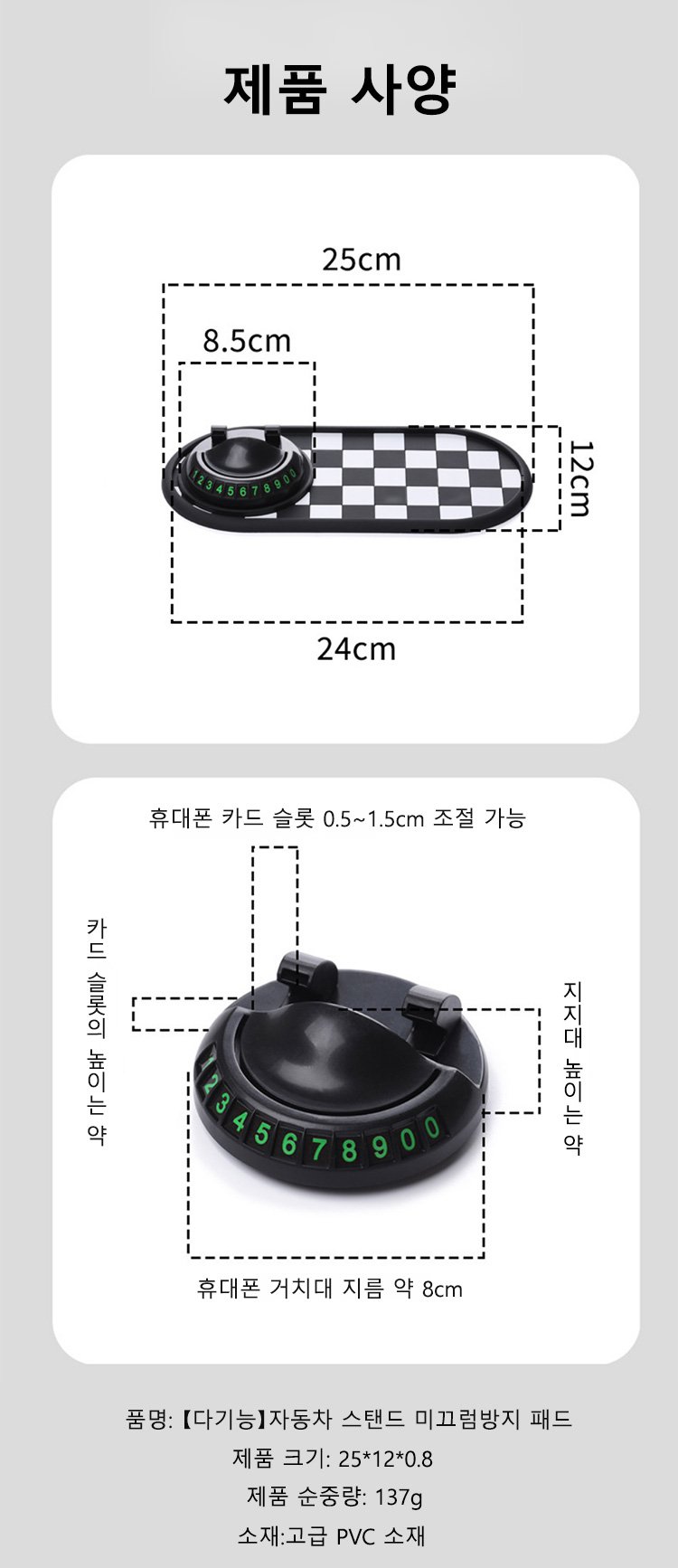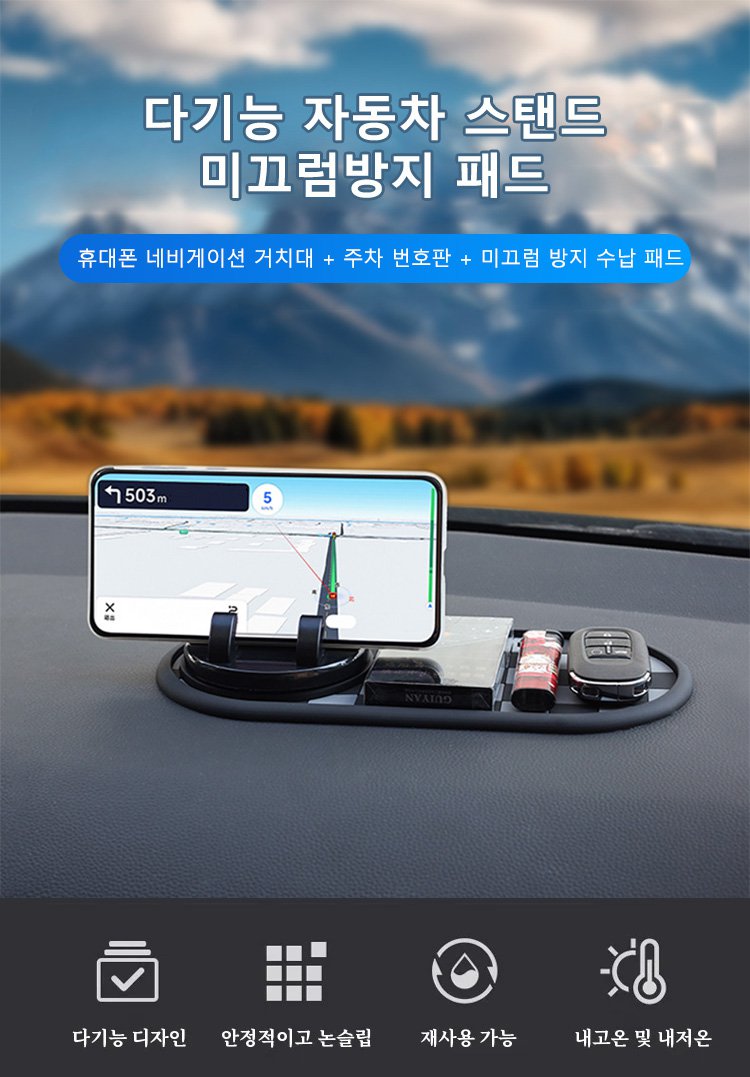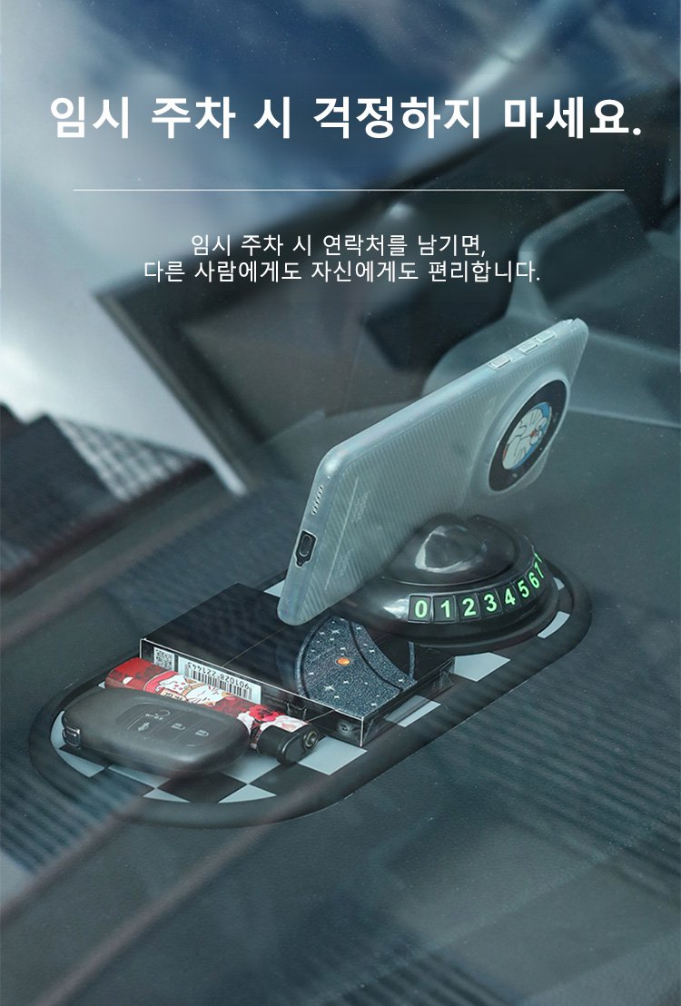 ✅차량용 자석 핸드폰 거치대 + 미끄럼 방지 수납판 + 임시 번호판 3합 1