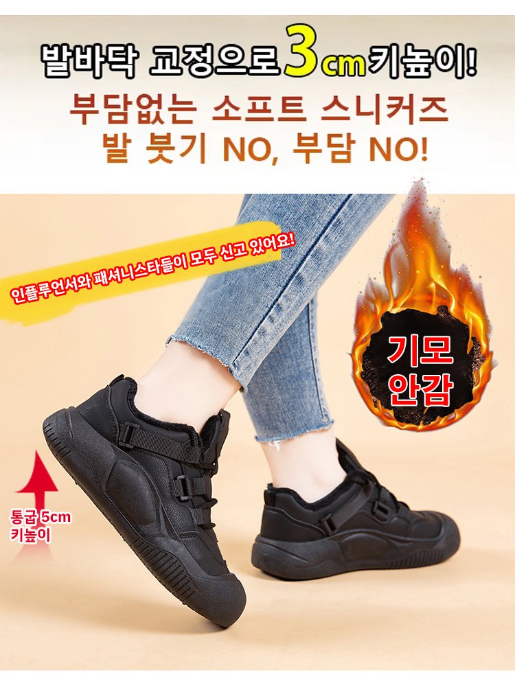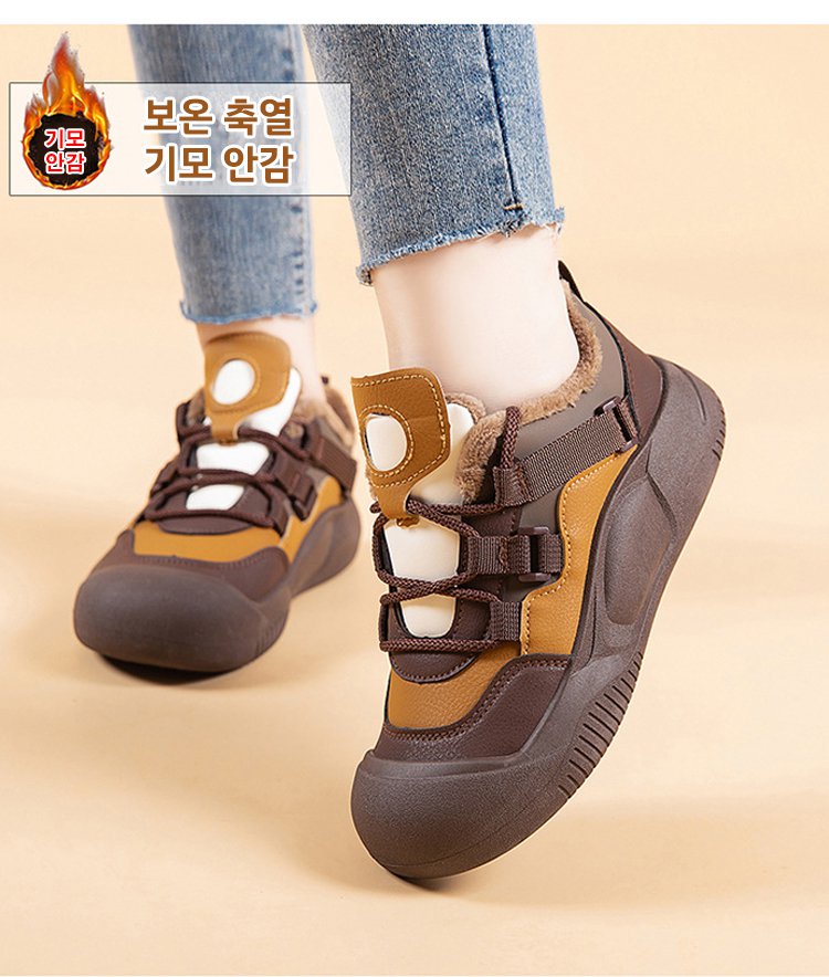 여성용 대인기 통굽 캐주얼 기모 스니커즈