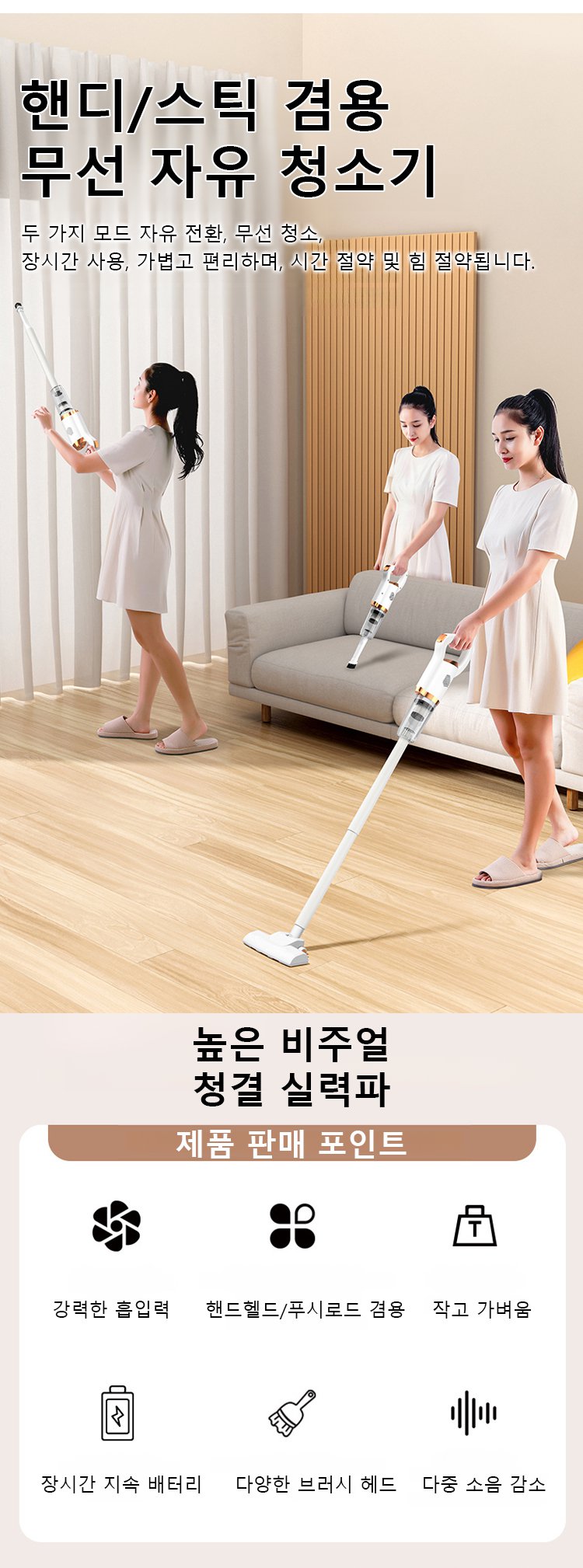 【10년 품질 보증】흡진과 밀걸레 2in1 일체형 다기능 휴대용 핸디 청소기